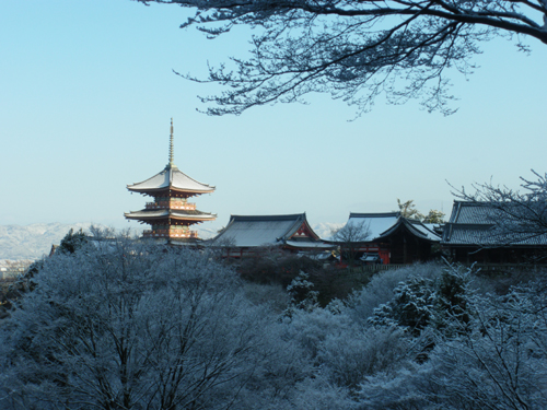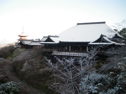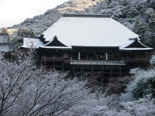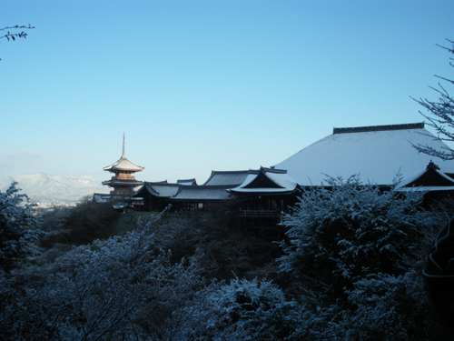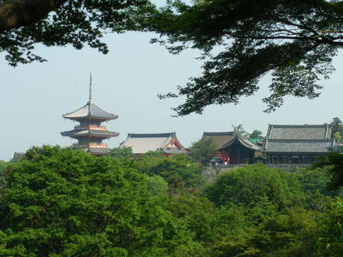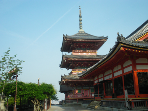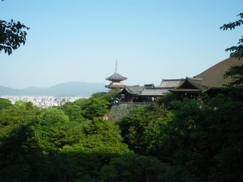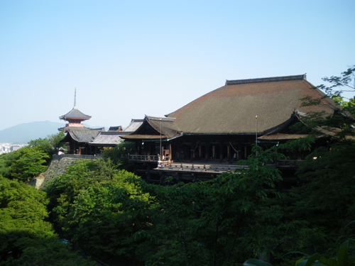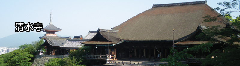 北法相宗の本山。西国観音霊場三十三カ所第16番札所。778年(宝亀9)延鎮上人が開山、798年(延暦17)坂上田村麻呂の創建と伝えられています。音羽山中腹に30近い堂塔伽藍が並んでいます。現在の主な堂塔は、1633年(寛永10)徳川家光の再建。'清水の舞台'で知られる本堂(国宝)は寄せ棟造り、檜皮葺、寝殿造り風の優美な建築で、十一面千手観音立像を安置。舞台の下方に音羽の滝、谷を隔てて安産祈願の子安の塔(重文)があります。ほかに仁王門、馬駐(うまとどめ)、鐘楼、西門(さいもん)、三重塔、経堂、田村堂、轟門、朝倉堂、釈迦堂、阿弥陀堂、奥の院など重文指定の建造物がいくつもあります。1994年(平成6)12月「古都京都の文化財」として「世界遺産条約」に基づく世界文化遺産に登録されました。住所 | 京都市東山区清水一丁目 大きな地図で見る |