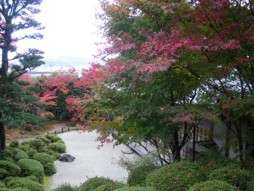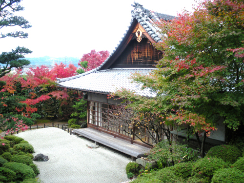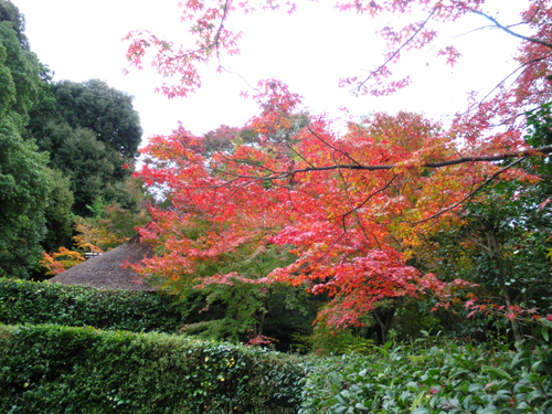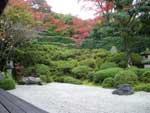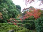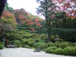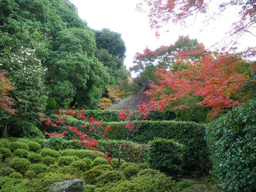 864年(貞観6)円仁(慈覚大師)の遺志を継ぎ、安恵僧都が創建しました。江戸中期に鉄舟和尚が再興し、現在は臨済宗南禅寺派。松尾芭蕉が鉄舟と親交を深めたという芭蕉庵は荒廃しましたが、のち与謝蕪村が再興。背後の丘に与謝蕪村ら近世の俳人の墓や句碑があります。また、舟橋聖一作歴史小説「花の生涯」や諸田玲子の「奸婦にあらず」のヒロイン村山たか女は文久2年、勤皇の志士によって三条河原でさらし者にされたが、3日後助けられて金福寺に入り尼として明治9年まで14年間すごし、当寺で生涯を終えました。本堂では与謝蕪村と村山たか女の遺品が拝観できます。庭園は皐月の築山と白砂の簡素な枯山水。3段の生垣ごしには素朴な趣の芭蕉庵の萱葺き屋根が見えます。芭蕉庵からは洛中が一望できます。住所 | 京都市左京区一乗寺才形町20 大きな地図で見る |