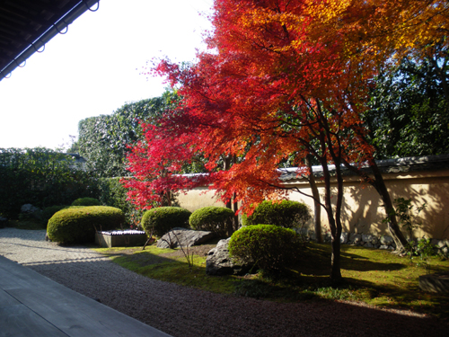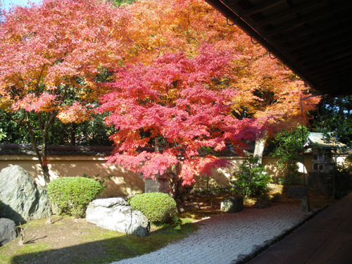 大徳寺塔頭。普段は非公開の寺院です。大永年間(1521-28)能登の守護畠山義総が建立。のち焼けたが、天文初年(1530〜1540頃)に再建。天正9年(1581)前田利家によって屋根の葺替が行われました。以後前田家菩提寺となりました。表門は創建当時の遺構で、本堂とともに重文。本堂は近年解体修理で創建当時の姿に復元されましたが、屋内後列中央の仏間と仏間裏の眠蔵(めんぞう)の構成などに特色を示します。重文の椿尾長鳥模様堆朱盆(長成作)を所蔵しています。住所 | 京都市北区紫野大徳寺町80 大きな地図で見る |