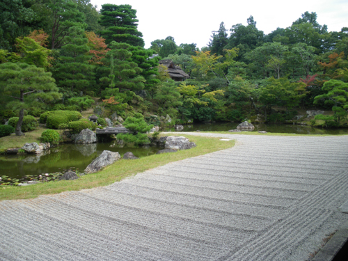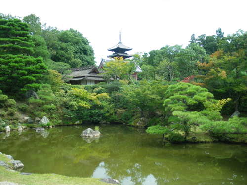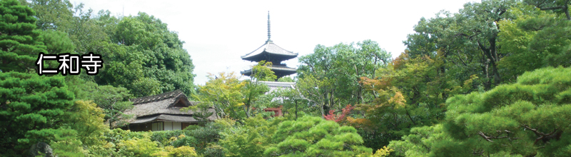 真言宗御室派総本山。886年(仁和2)、光孝天皇の勅願により創建、888年(仁和4)に完成。年号を寺名としました。宇多天皇が落髪入寺し寺内に御室(御座所)を設け、御室御所と呼ばれ、以後、明治まで代々法親王が門跡となり門跡寺院の筆頭にありました。堂塔伽藍は応仁の乱(1467-77)で多くを焼失、寛永年間(1624-44)に再興。金堂(国宝)は御所紫宸殿を移築。御影堂(重文)も旧清涼殿の材を用いて建立。霊宝館には、阿弥陀三尊像(国宝)、孔雀明王像(国宝)、弘法大師の真筆三十帖冊子(国宝)など多くの寺宝を陳列。遅咲きの'御室桜'は有名で名勝になっています。旧御室御所御殿の御所風たたずまい、豪華な障壁画が見事です。1994年(平成6)12月「古都京都の文化財」として、「世界遺産条約」に基づく世界文化遺産に登録されました。仁和寺御殿庭園の東西にくびれた池は南北朝の典型な特徴を示します。また、石組には元禄時代の手法が残る。住所 | 京都市右京区御室大内33 大きな地図で見る |