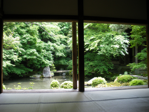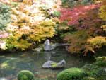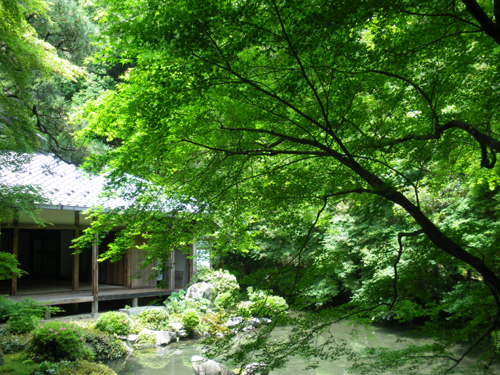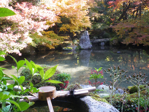 江戸初期の寛文年間(1661-73)加賀藩の家老今枝近義が洛中から移し再興。本堂前に六角形急勾配の笠をつけた蓮華寺型石灯籠があり、茶人の間で有名です。鐘楼には黄檗2世木庵禅師銘のある銅鐘がかかっています。池泉鑑賞式庭園は書院の東側から、清流を導いた奥行きのある作りになっています。住所 | 京都市左京区上高野八幡町1 大きな地図で見る |