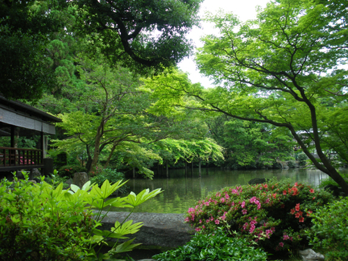 京都御苑内にある九条家のお茶室です。拾翠亭は今から200年ほど前の江戸時代後期に茶室として建てられたもので、貴族の茶室らしく、遊び心にあふれた建築と言われています。拾翠亭の前面に広がる池は九条池と呼ばれており、安永7年(1778年)頃、東山を借景とし、拾翠亭からの眺めを第一につくられたといわれています。住所 | 京都市上京区京都御苑内 大きな地図で見る |