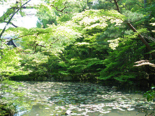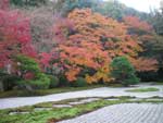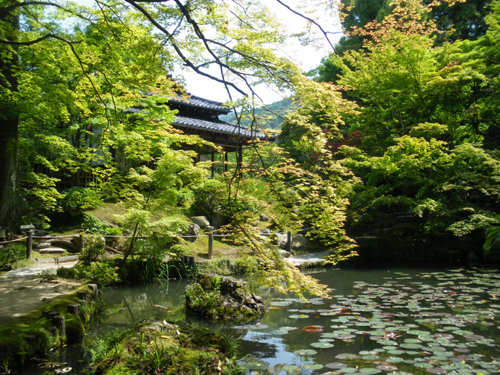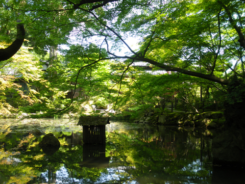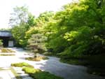 南禅寺の塔頭。1339年(暦応2)光厳天皇の勅許により虎関師錬が南禅寺開山無関普門(大明国師)の塔所として建立。1602年(慶長7)細川幽斎が再興しました。方丈の襖絵は長谷川等伯の筆で重文。方丈前庭(東庭)は白砂の庭を苔に縁取られた菱形の畳石が横切る枯山水庭園です。書院南庭は杉やカエデが鬱蒼と茂る池泉回遊式庭園です。住所 | 京都市左京区南禅寺福地町 大きな地図で見る |