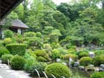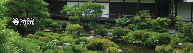 足利将軍家の菩提寺。暦応4年(1341)年足利尊氏が等持寺の別院として夢窓国師を開山として創建。尊氏の死後、その墓所となり、等持院と改めました。庭園は東西に分かれ、西の庭は芙容池と称し衣笠山を借景にした池泉回遊式であり北側に義政公好みの茶室清漣亭があります。霊光殿には歴代将軍の木像を安置しています。住所 | 京都市北区等持院北町63 大きな地図で見る |