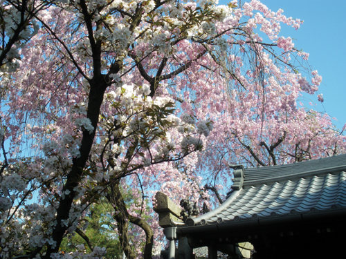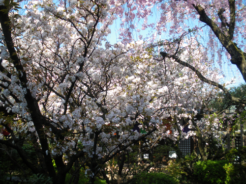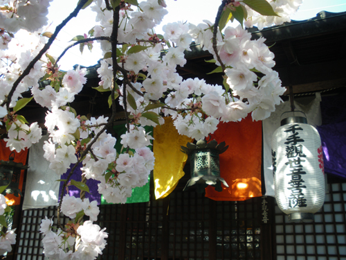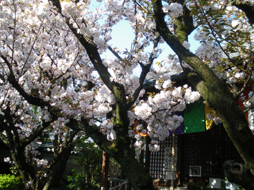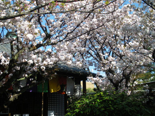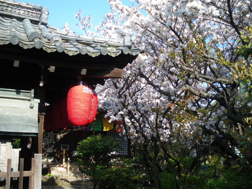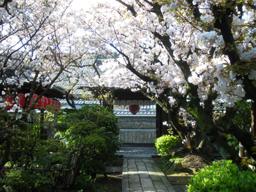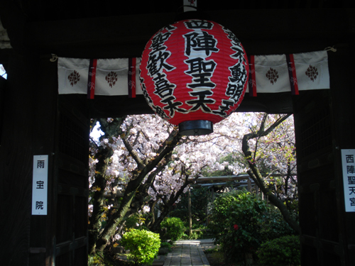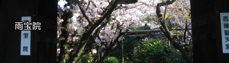 北向山雨宝院と号する古義真言宗の寺で、「西陣の聖天さん」として親しまれています。本堂に安置する本尊「聖天(しょうてん)(大聖(だいしょう)歓喜天(かんきてん))像」は、821年、弘法大師(空海上人)が嵯峨天皇の御悩平癒(へいゆ)を祈願して安置したものとされ、それが当寺の始まりと伝えられています。観音堂に安置する千手観音立像は、重要文化財に指定されており、また、大師堂の本尊は汗をかくほど辛いことでも助けてくれるという「阿吽(あうん)あせかき弘法大師像」として知られています。境内東南には、その水を染物に用いるとよく染まるとして有名な「染殿の井(そめどのい)」があり、夏の旱魃(かんばつ)時でも涸(か)れることがありません。また、本堂前の「歓喜桜」は、御室の八重桜と同種のもので、根元から八重の花を咲かせます。その隣にある「時雨(しぐれ)の松」は、久邇宮朝彦(くにのみやともひこ)親王が当院参詣の折、その下でにわか雨をしのがれたと伝えられています。住所 | 京都市上京区智恵光院上立売西入る聖天町9-3 大きな地図で見る |
